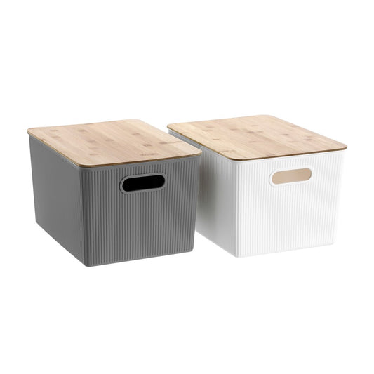 Large Dark Grey Storage Tub with Bamboo Lid