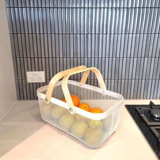 Large White Rectangle Mesh Storage Basket