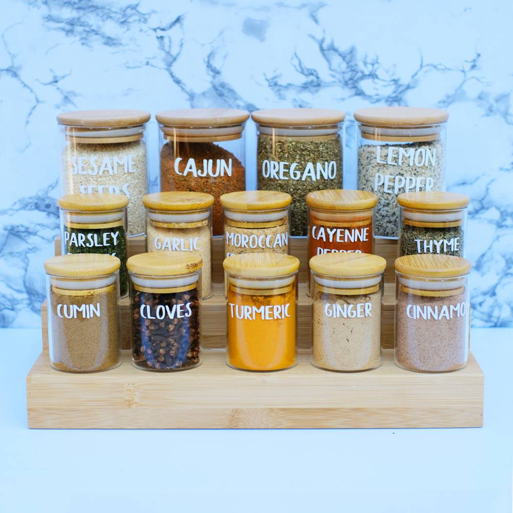 10 Baby & 4 Large Herb & Spice Jars with Spice Rack Set - 100ml & 300ml