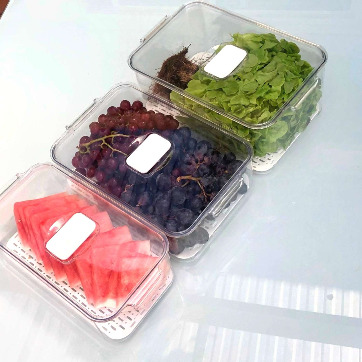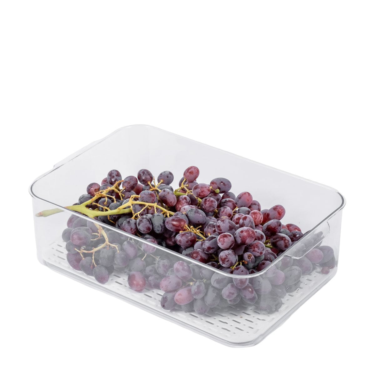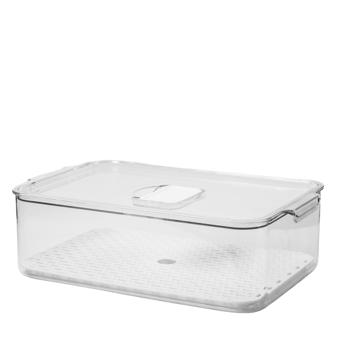 Large Clear Fridge Storage Box with Drainer Board & Lid