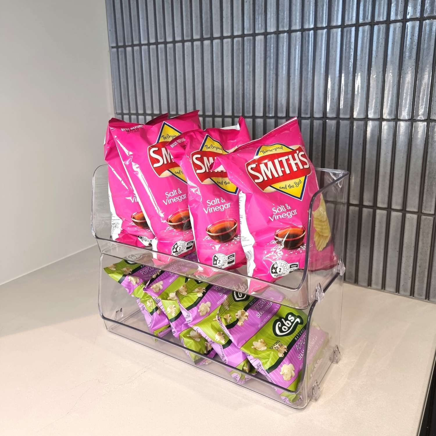 Our medium U shaped tub is made of high quality, BPA free, durable plastic. The clear tub is stackable and extremely versatile and provides an amazing storage compartment for your Pantry, Bathroom, Kitchen and Laundry. Make organising stylish and easy with this tub.