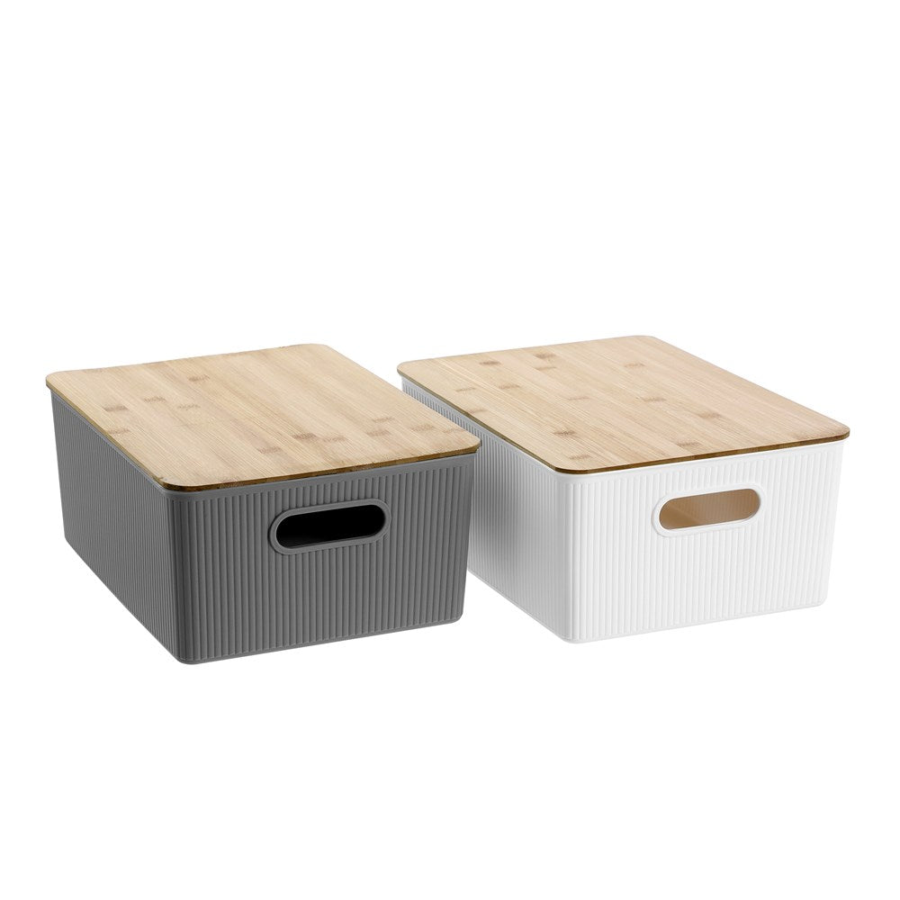38cm x 18.5cm x 16cm Bamboo Lid BPA Free White tub Beautifully ribbed design